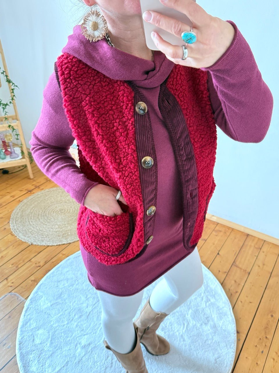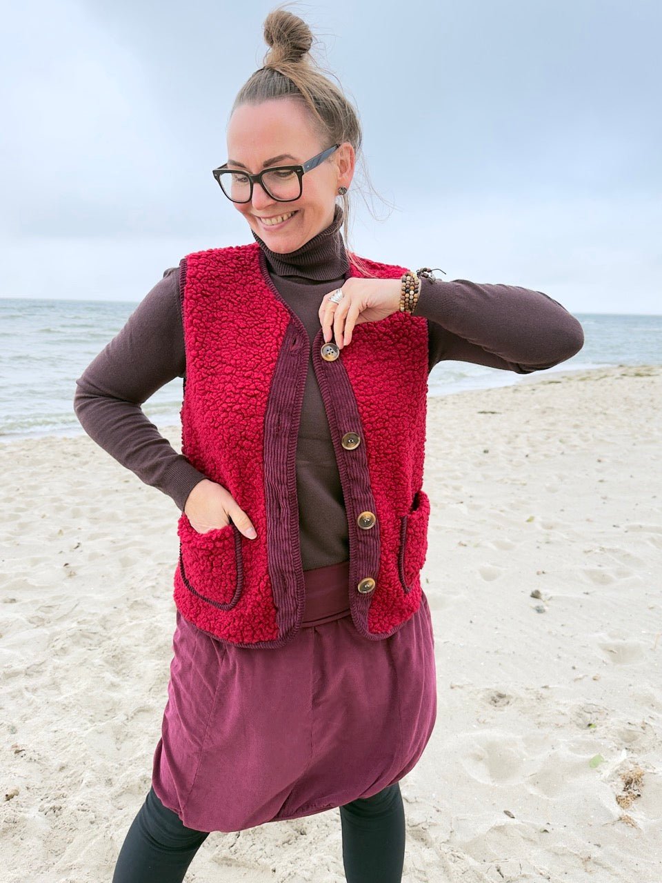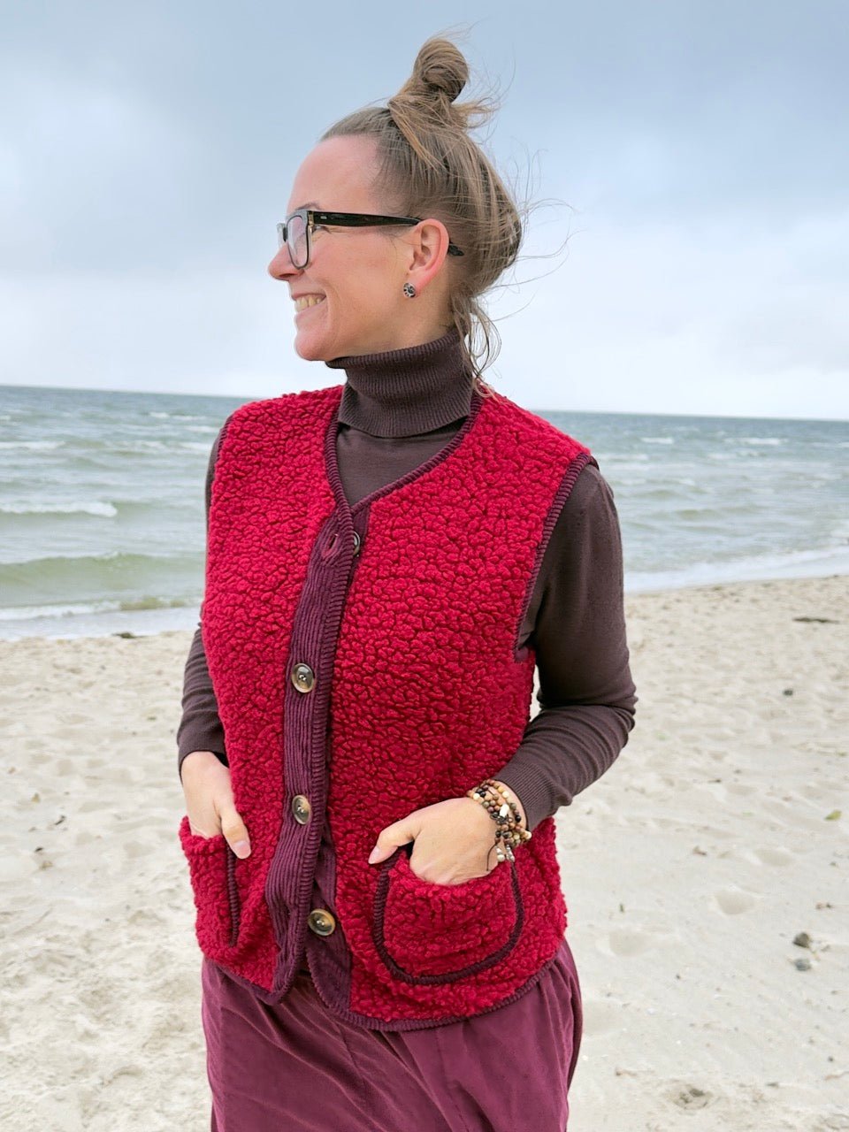 • Kuschelig weiche Teddy Weste in Cherry / Dunkelrot