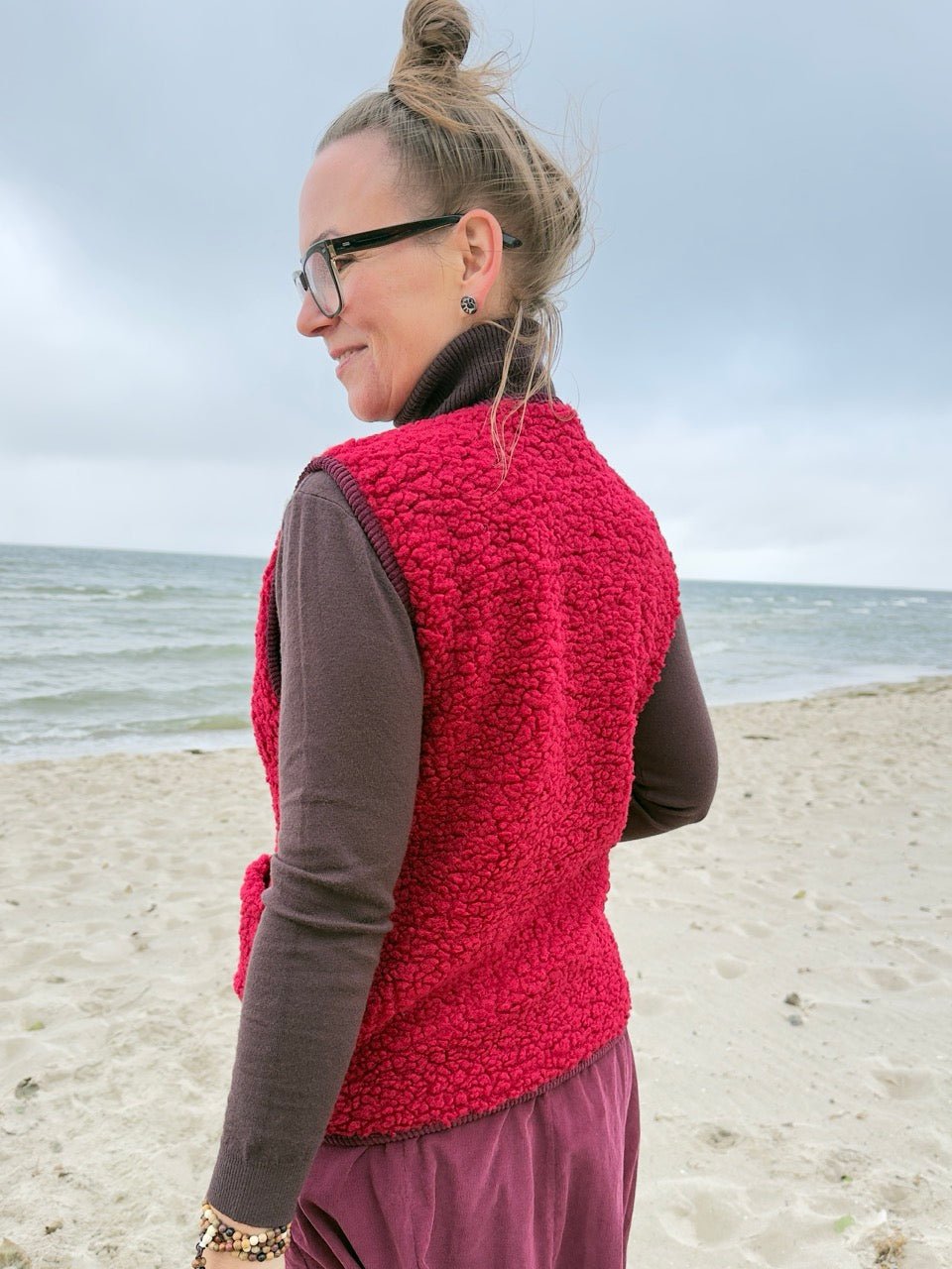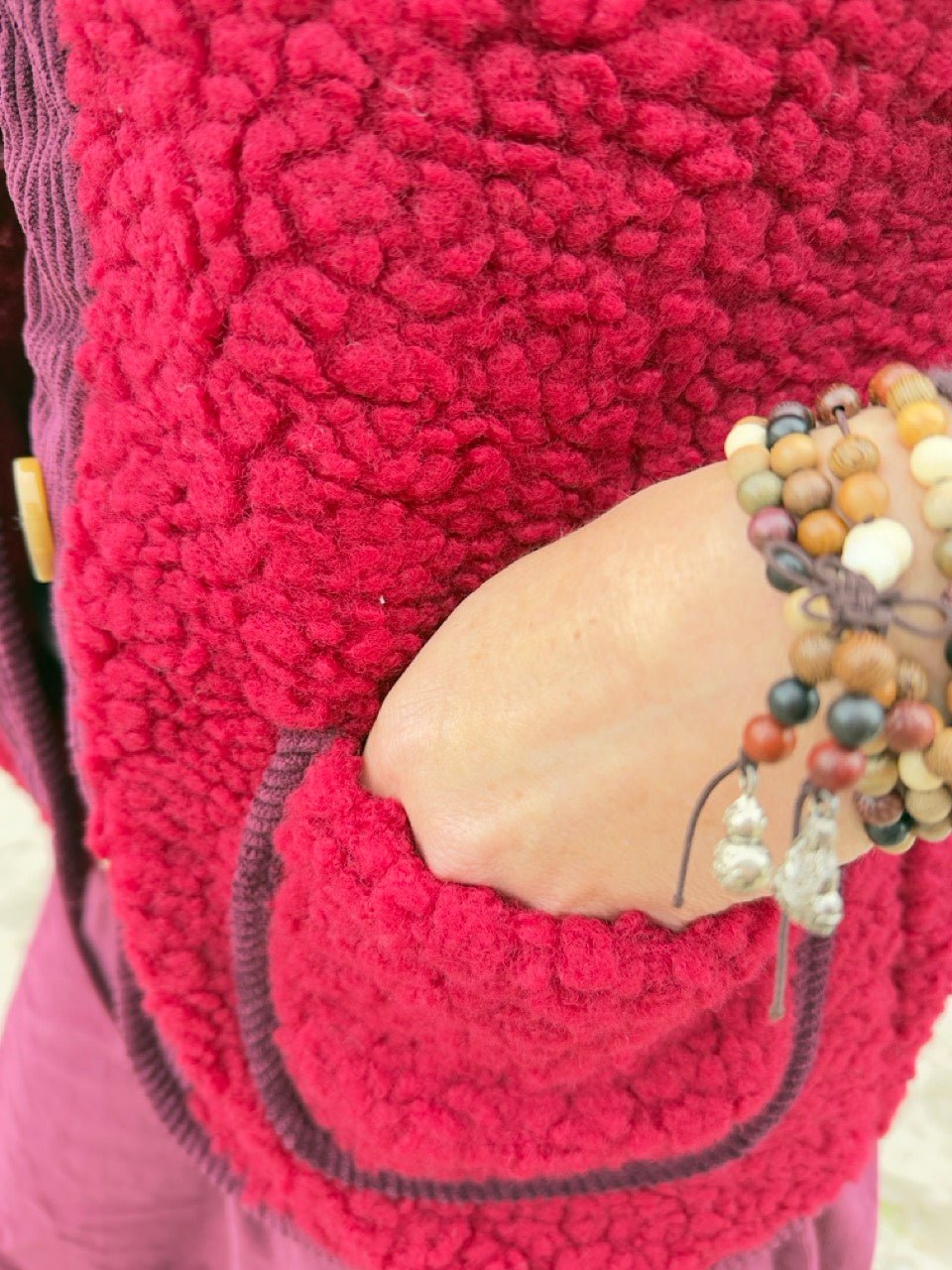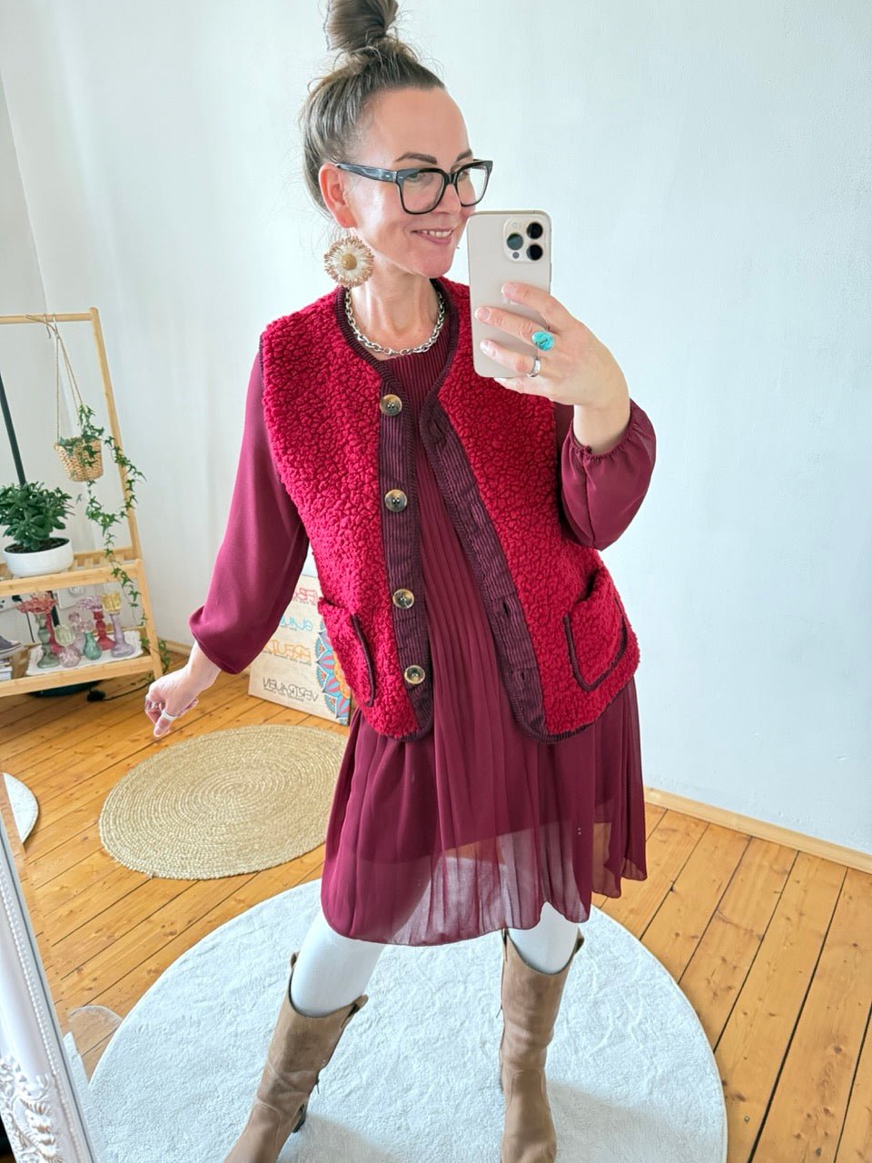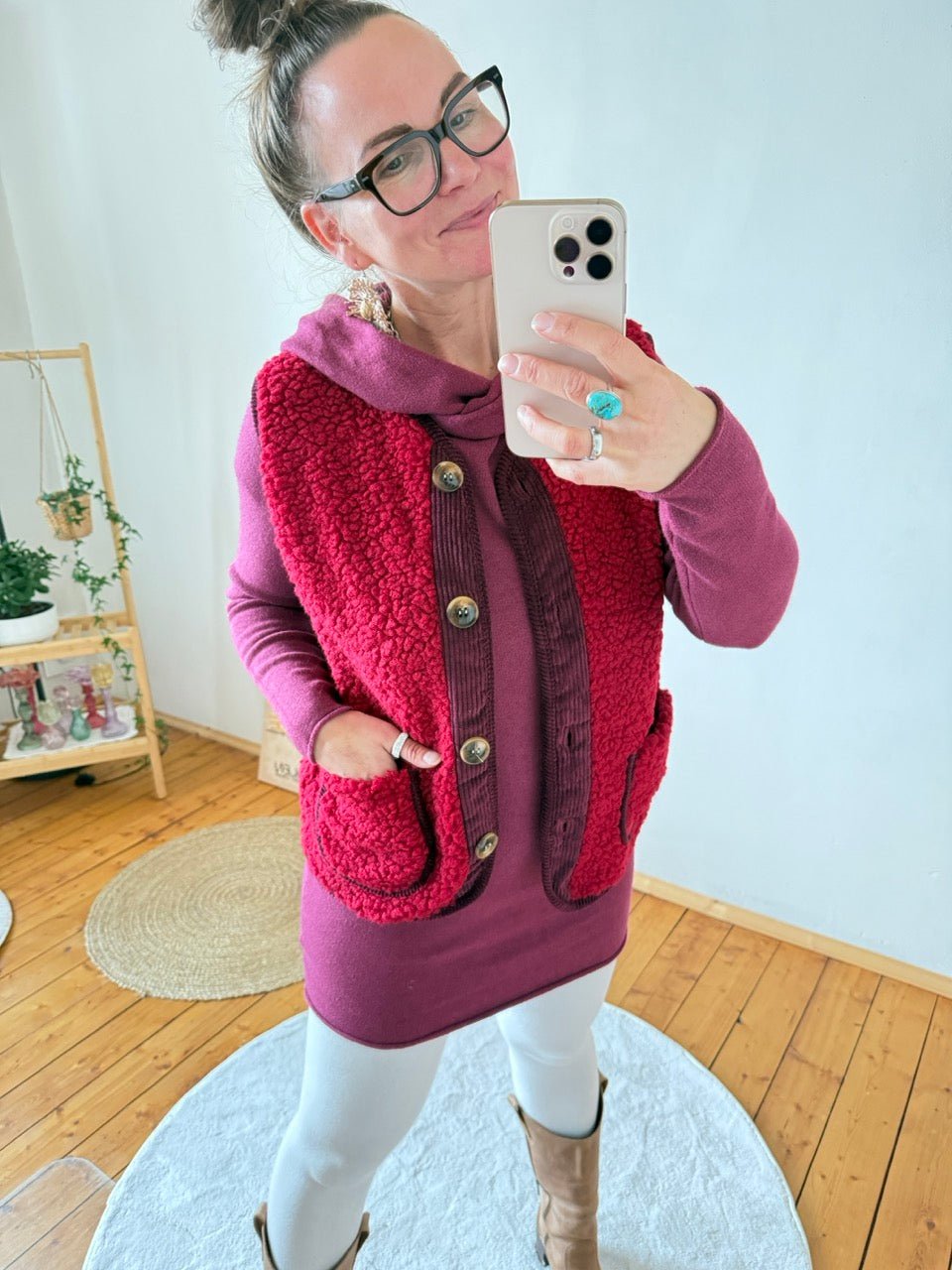• Kuschelig weiche Teddy Weste in Cherry / Dunkelrot