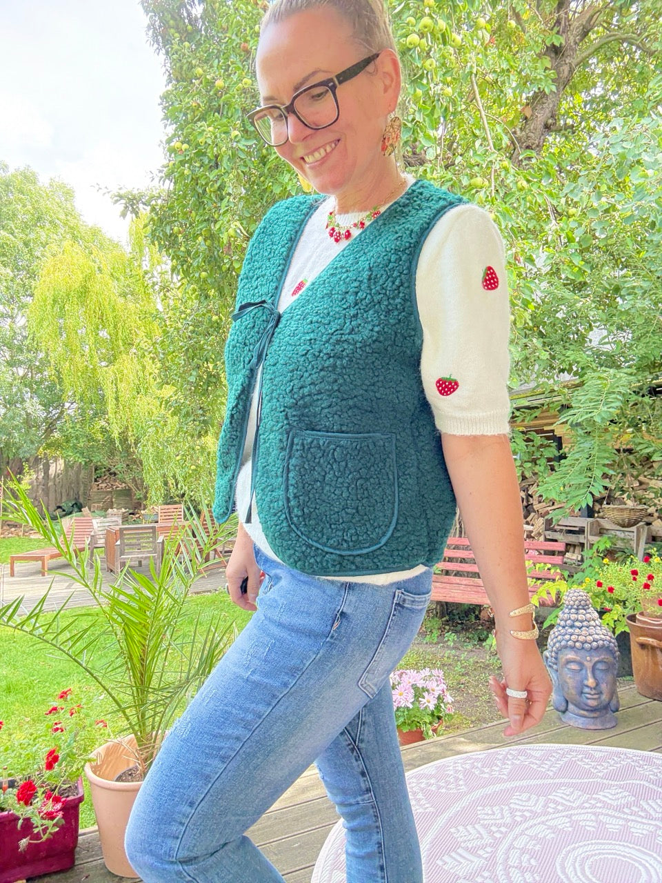 • Kuschelig weiche Teddy Weste in Alt Rose, mit kleinem Wollanteil