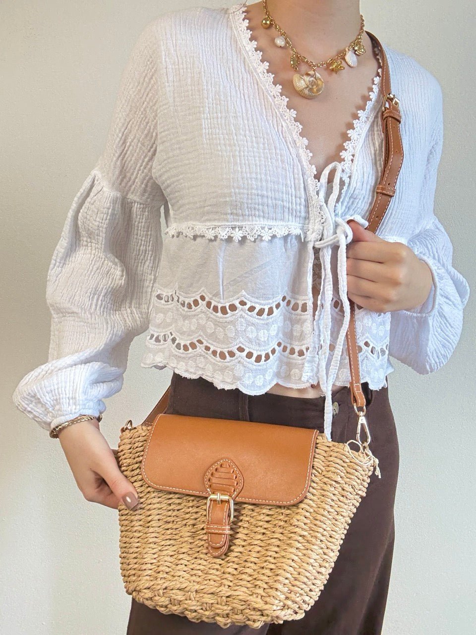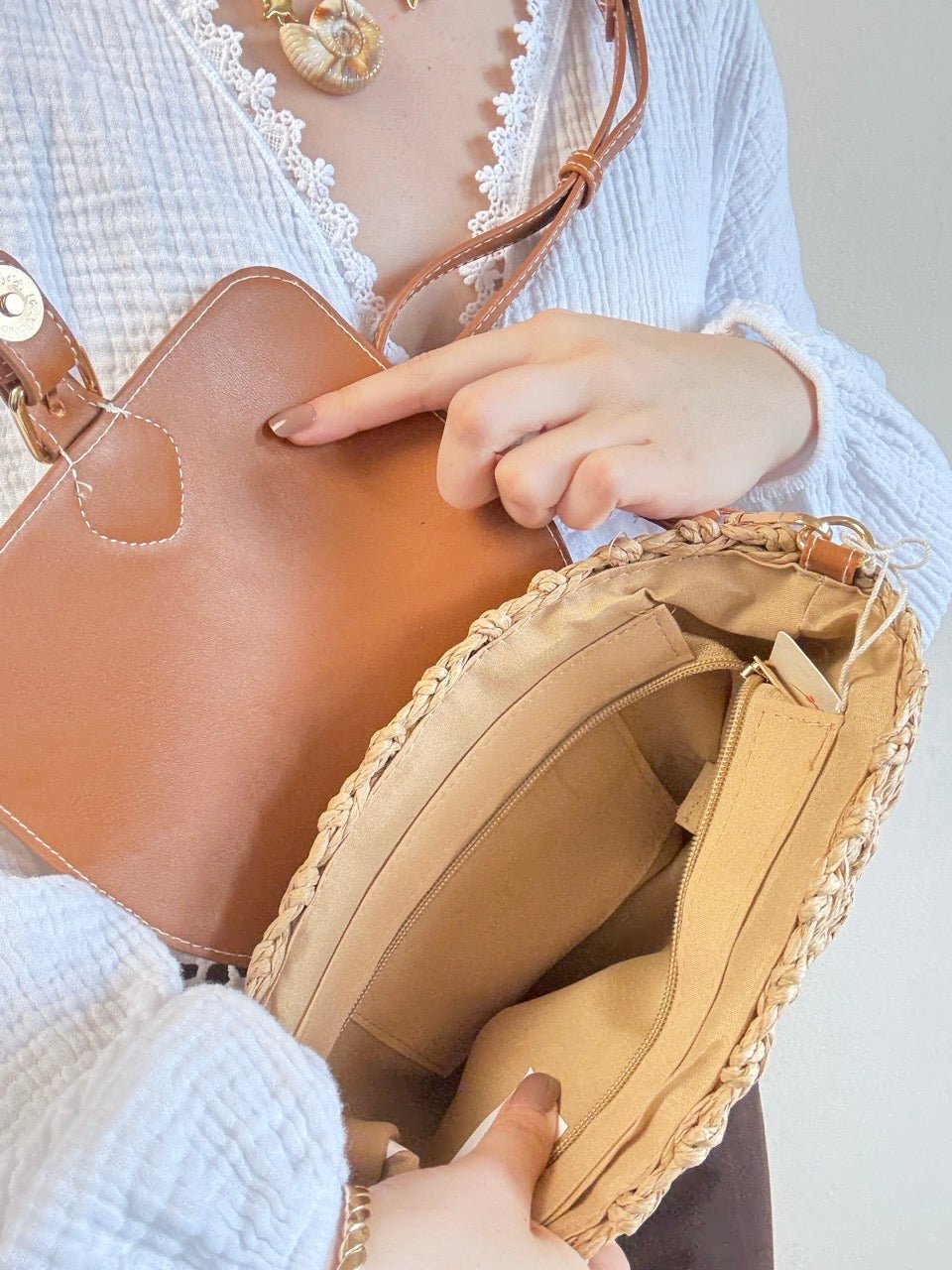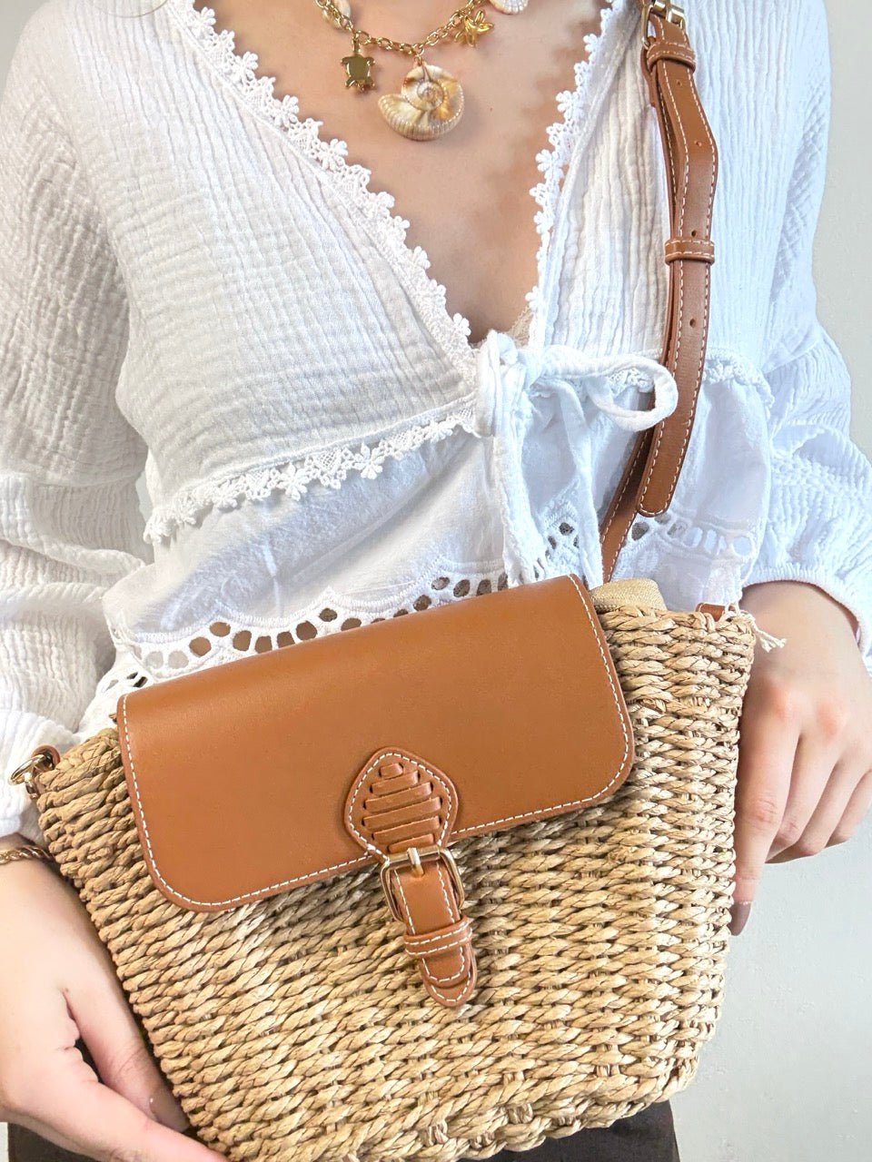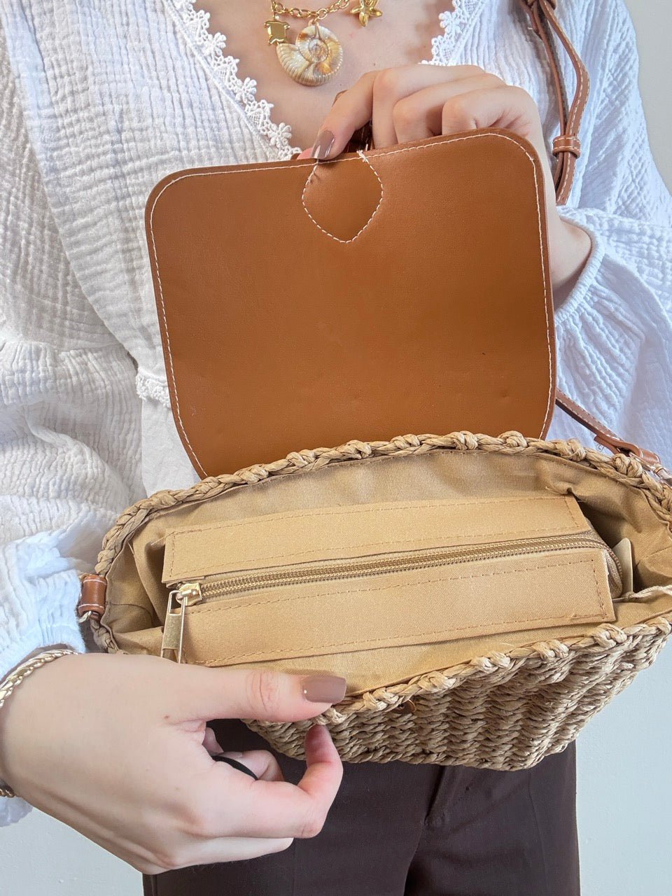 • Zauberhafte Korb Umhängetasche in geflochtener Optik