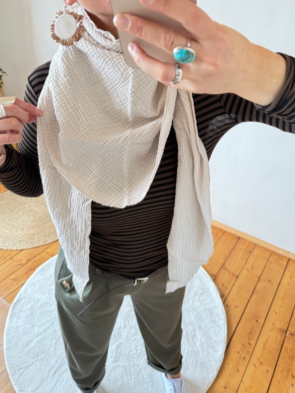 • Wunderschönes, großes Dreiecks - Musselin Baumwolltuch in Cream