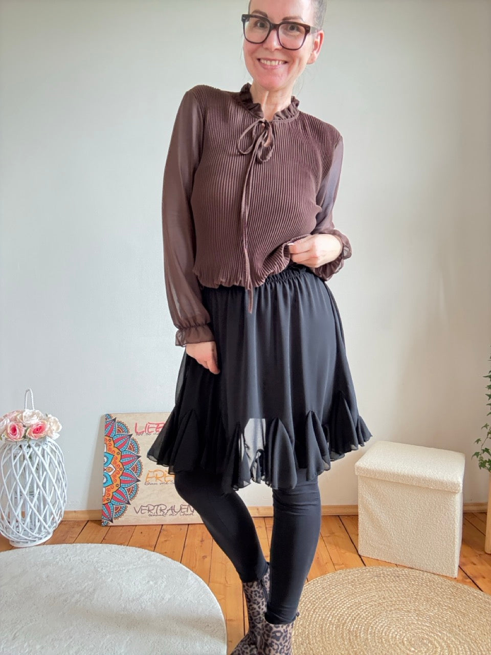 • Toller, leichter Rock in Schwarz mit Volant Rand