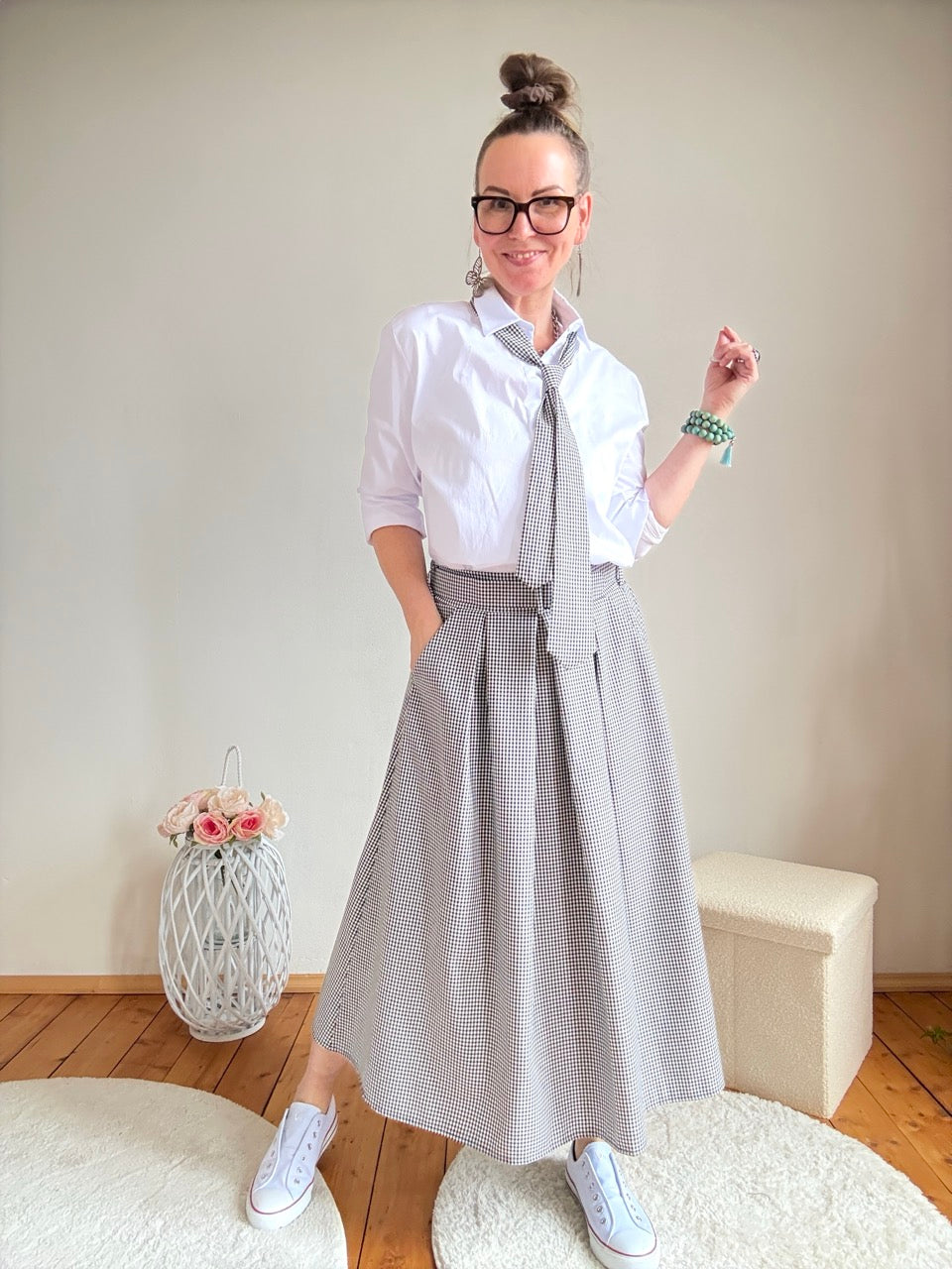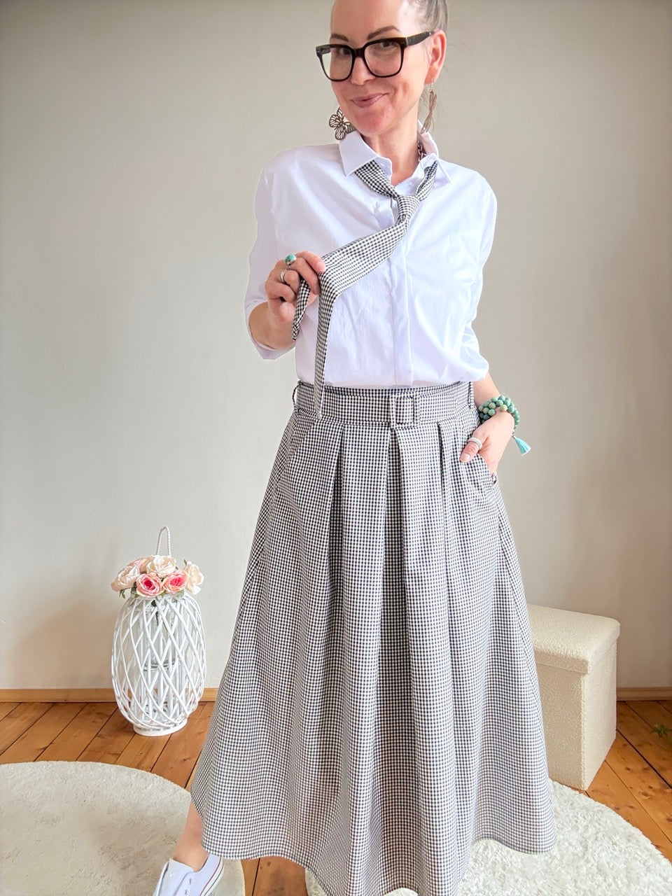 • Toller Rock in Schwarz Weiß mit feinen Karos, mit Gürtel