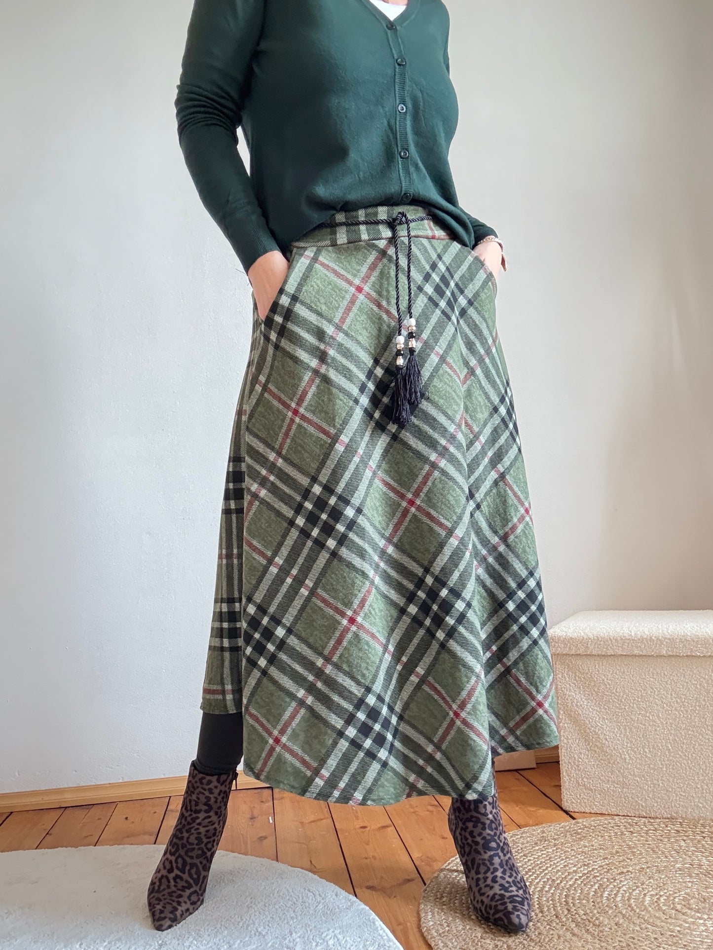 Rock Leni Karo mit Gürtel Schoko zum Warenkorb hinzufügen