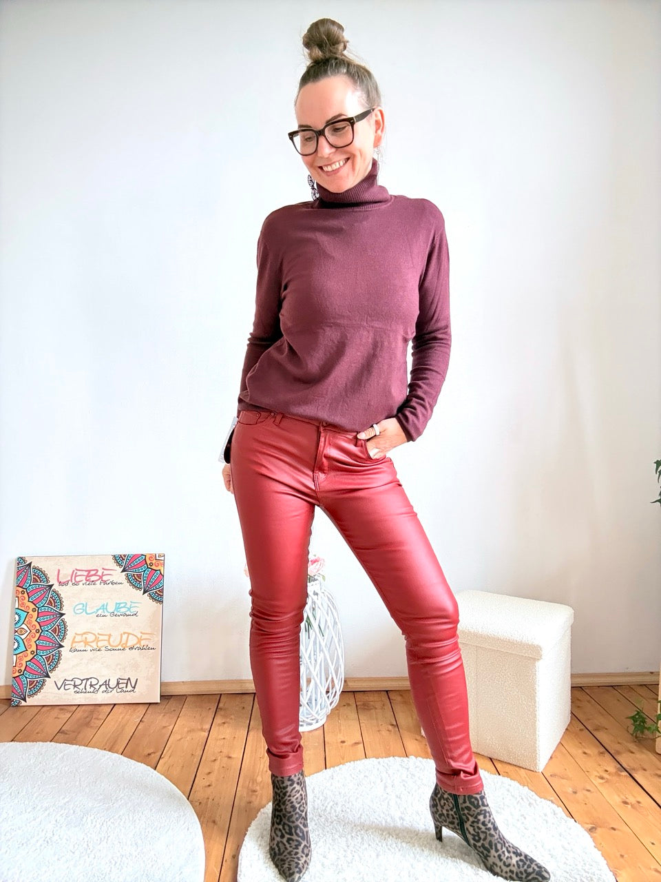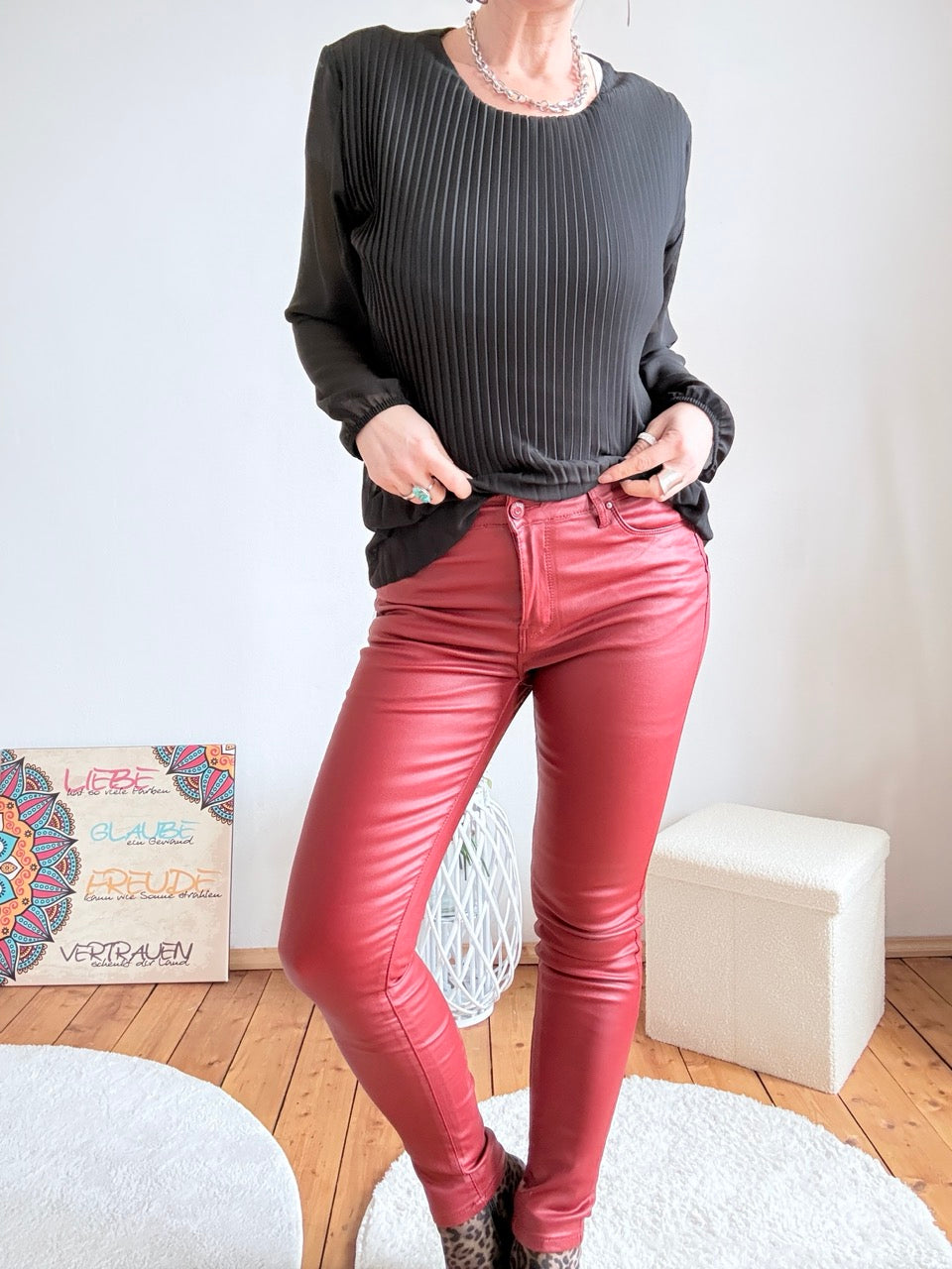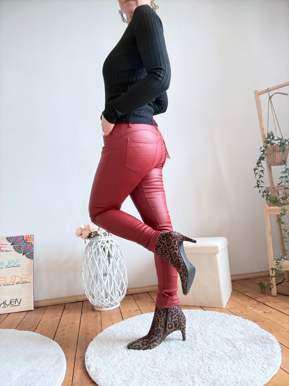 • Bequeme Push Up Lederimitat Hose in Cherry