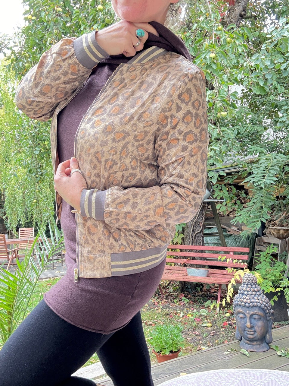 • Tolle, leichte Blouson Jacke in Leo Optik Beige, leicht schimmernd