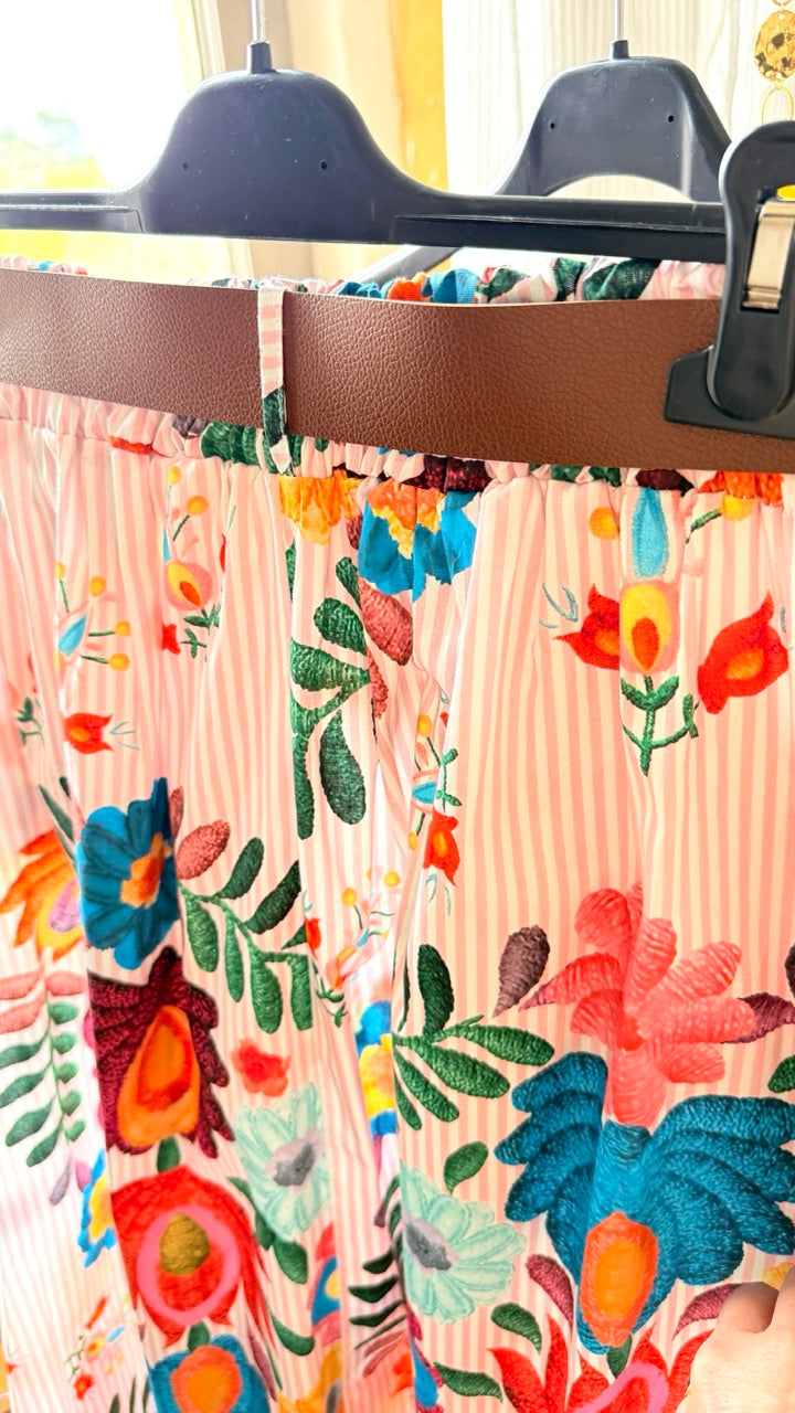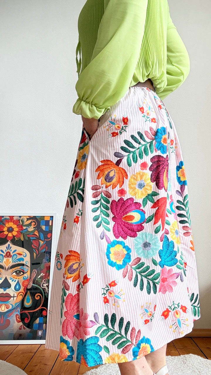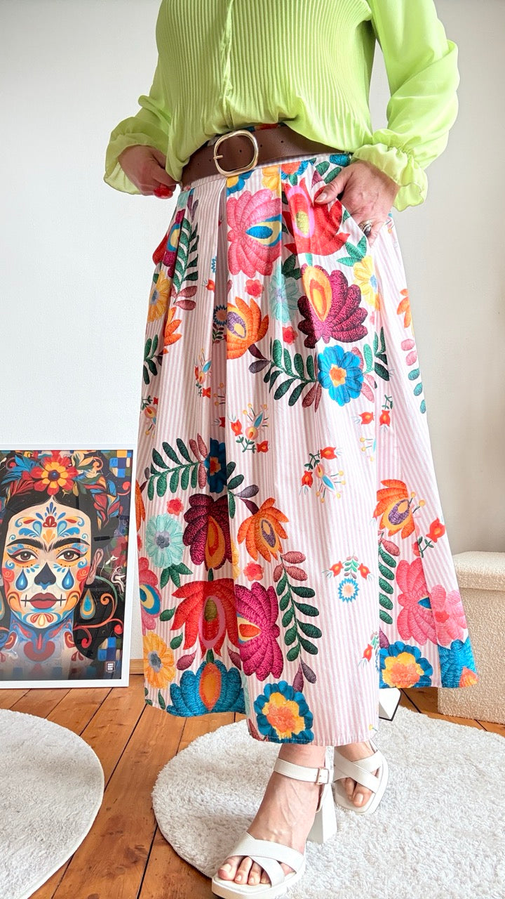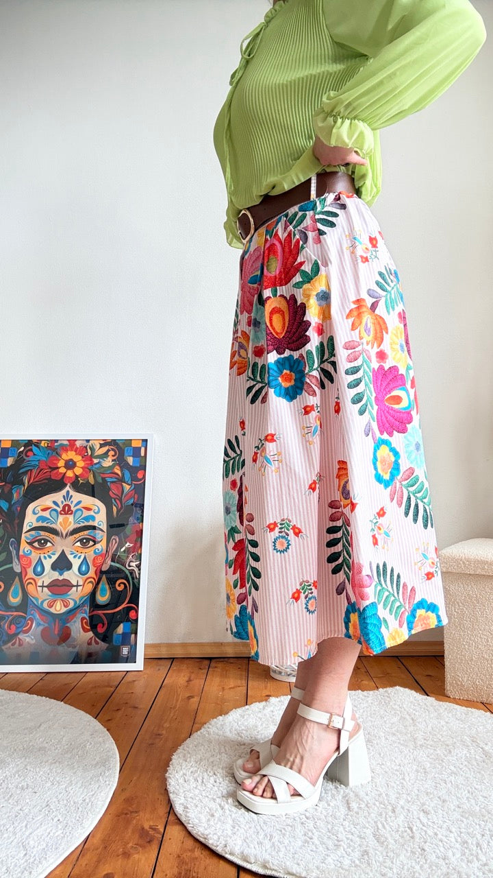 • Toller Maxi Rock mit Gürtel in Weiß mit buntem Blumen Motiv - in limiterter Auflage!