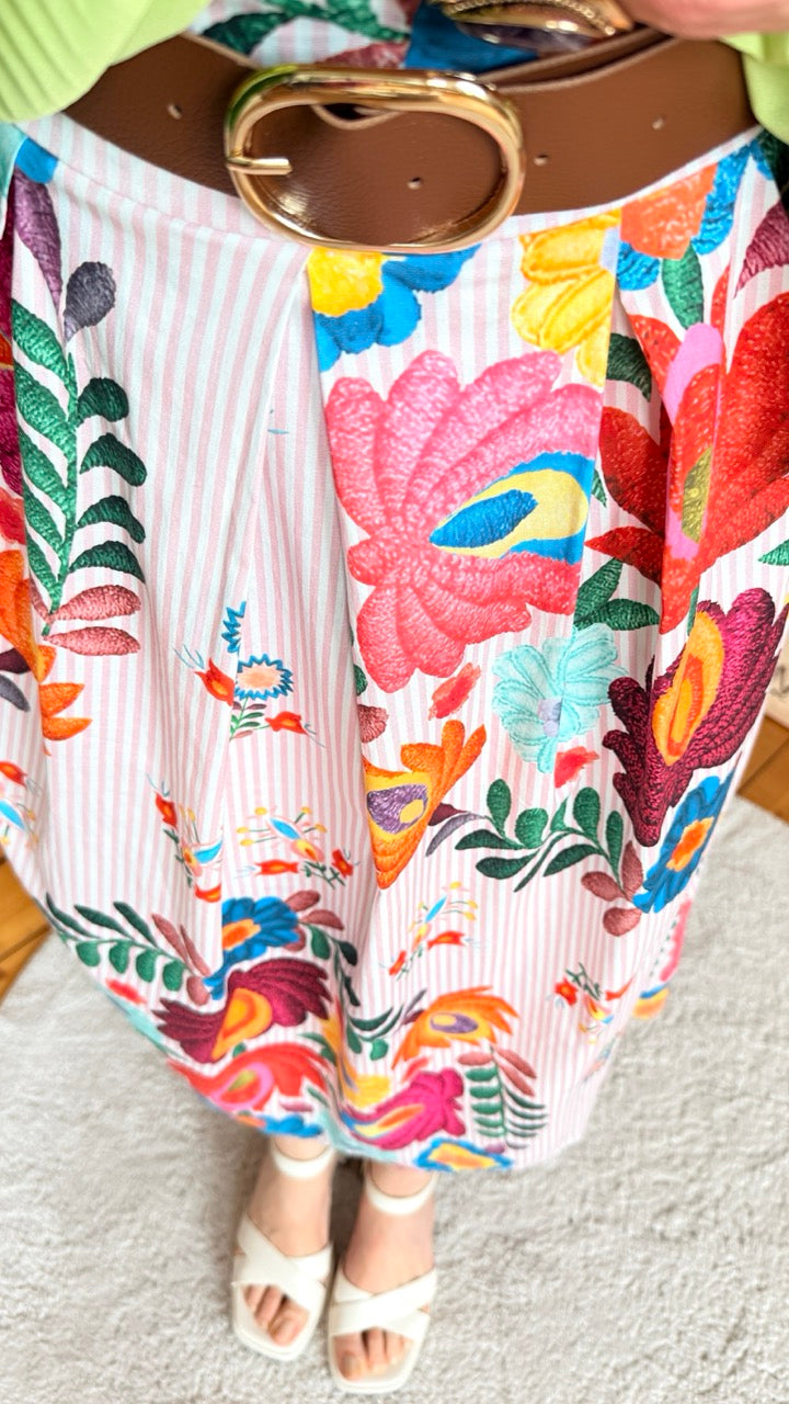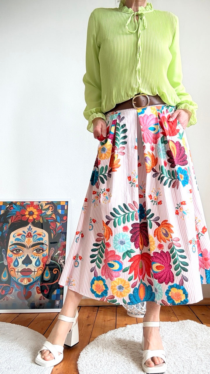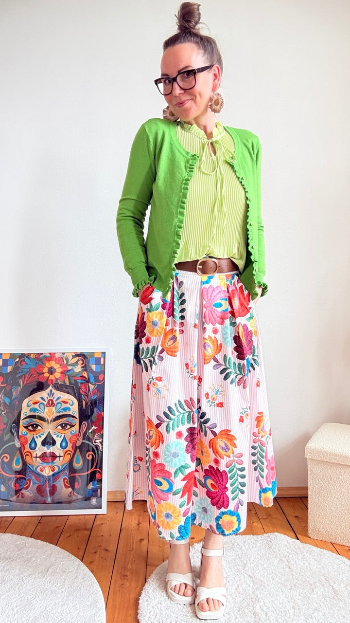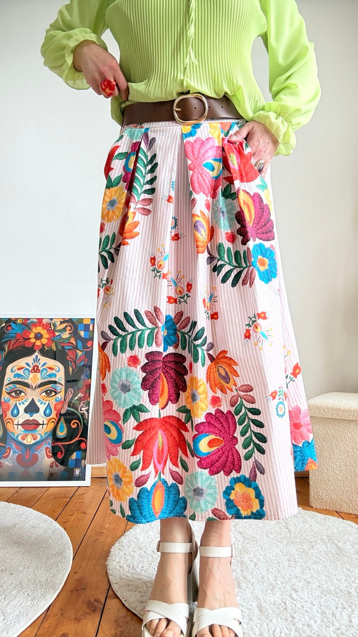 • Toller Maxi Rock mit Gürtel in Weiß mit buntem Blumen Motiv - in limiterter Auflage!