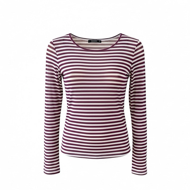 • Tolles, leicht transparentes Langarmshirt in Cherry mit hellen Streifen