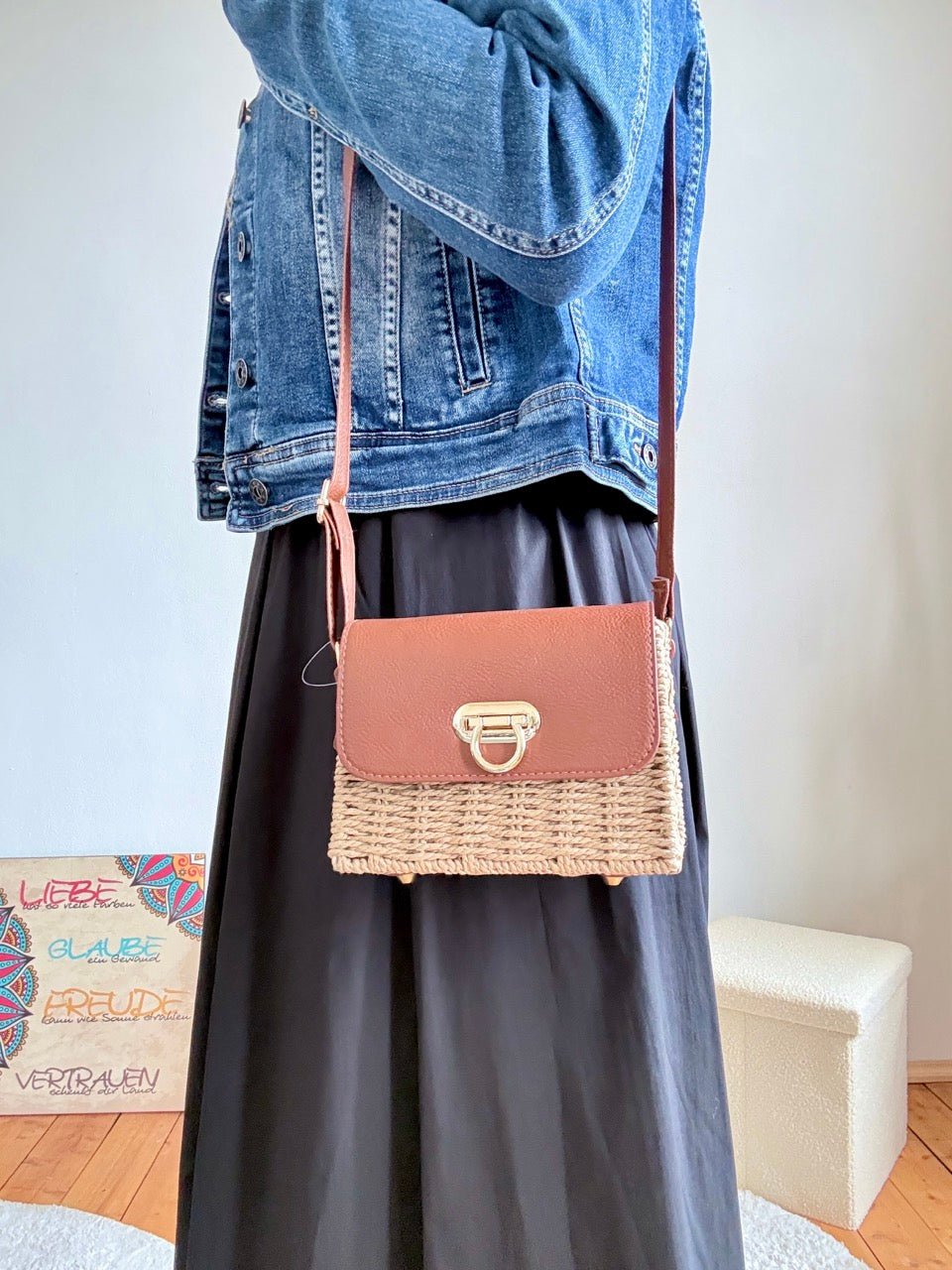 • Zauberhafte, kleine Korb Umhängetasche in geflochtener Optik