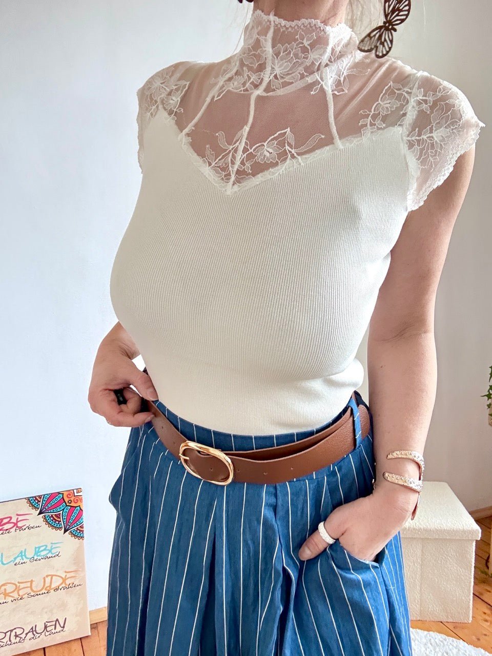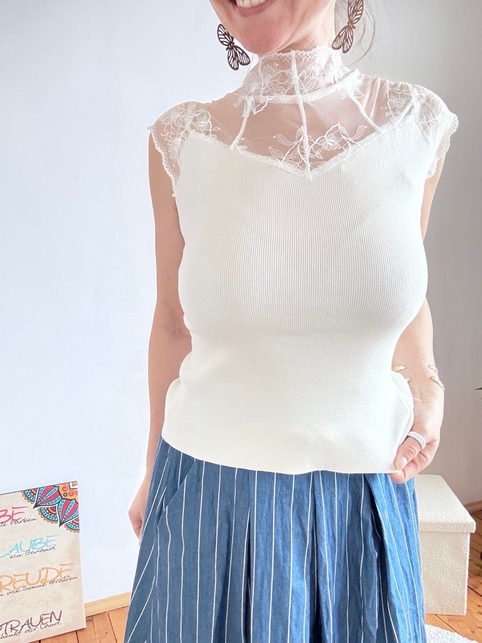• Spitzenmäßiges Strick Top in Cream, mit tollem Spitzenbesatz im Schulterbereich